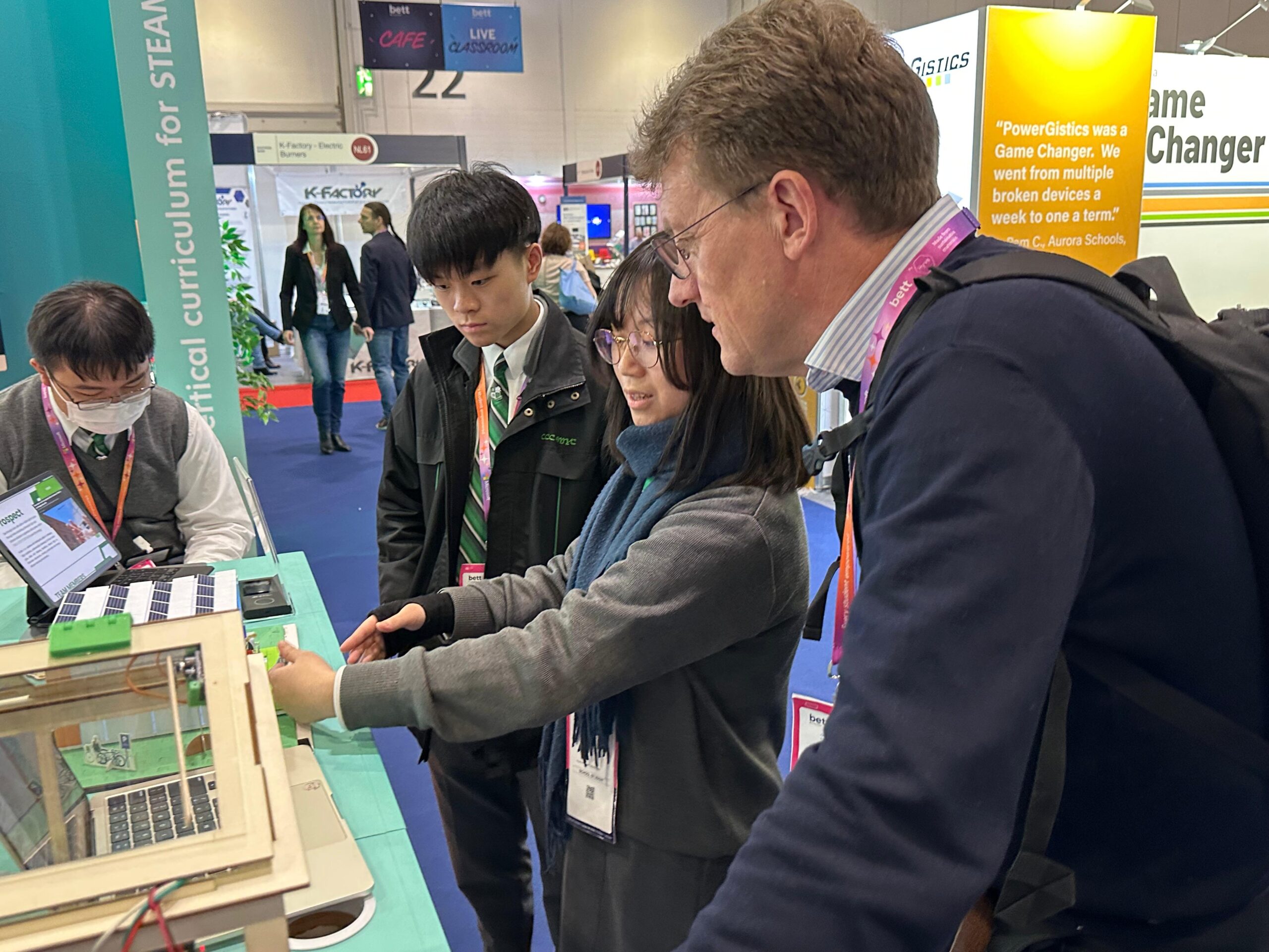 我們也踏出地域的水面。學生代表遠赴英國 Bett 2025,在全球舞台以英語介紹校本AI專案,提出節能減排與綠色校園的解決方案。對首次參加國際教育科技盛會的同學而言,敢於用英語清楚表達、現場回應提問,本身就是跨越舒適圈的里程;他們學會把所知轉化為公共對話,讓世界聽見銘賢的聲音。