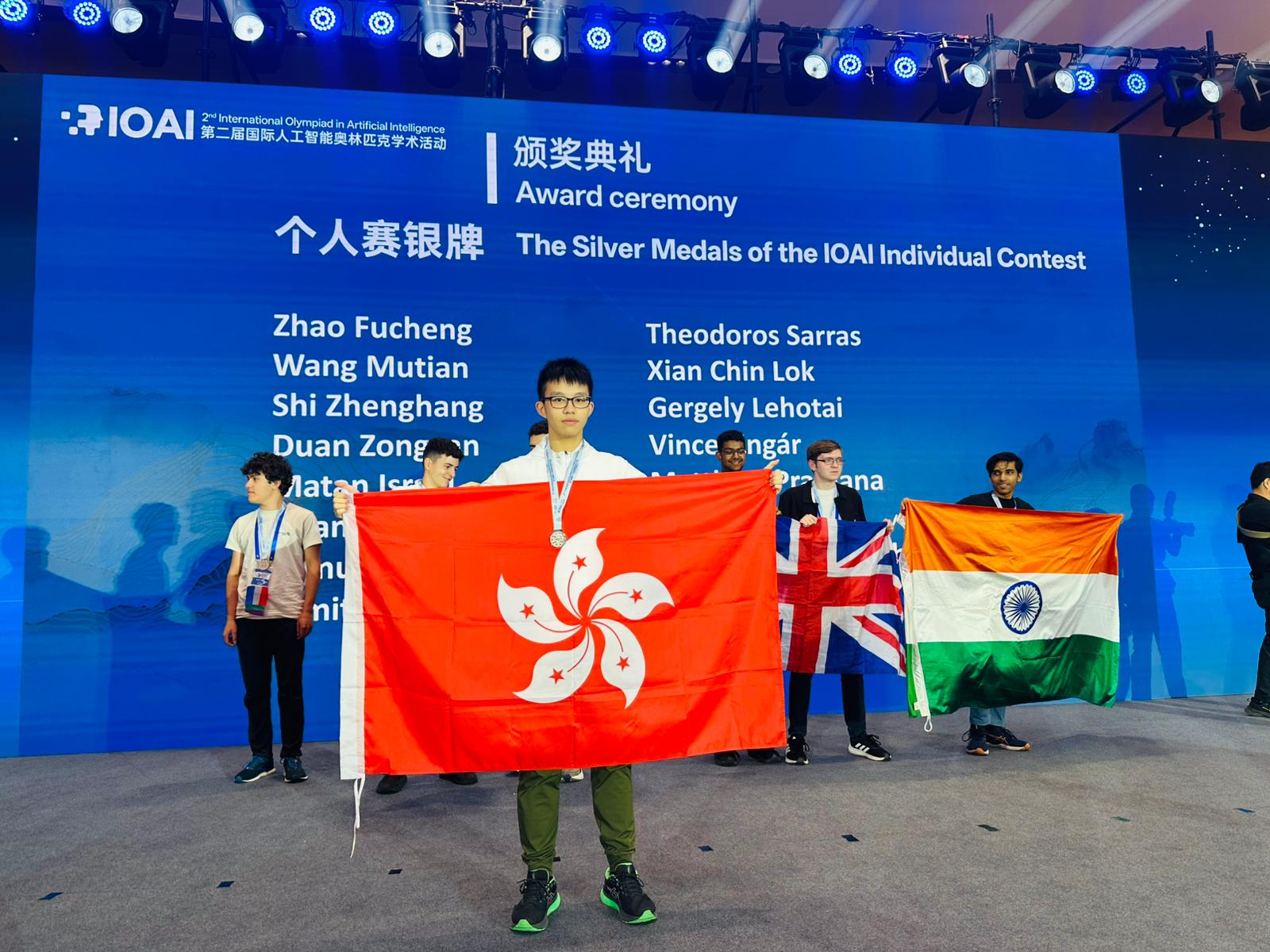 - 於北京舉行的第二屆 IOAI 決賽規模空前,聚集了來自60多個國家、80多支隊伍、近300名選手同場角逐個人賽與團體賽。香港隊整體表現亮眼,奪得1金、1銀、2銅及3個榮譽提名;本校學生於個人賽榮獲銀獎與榮譽提名,為港增光。獎牌背後,是一次次的調整、重構、一次次在失手後仍願意再試一次的勇氣。