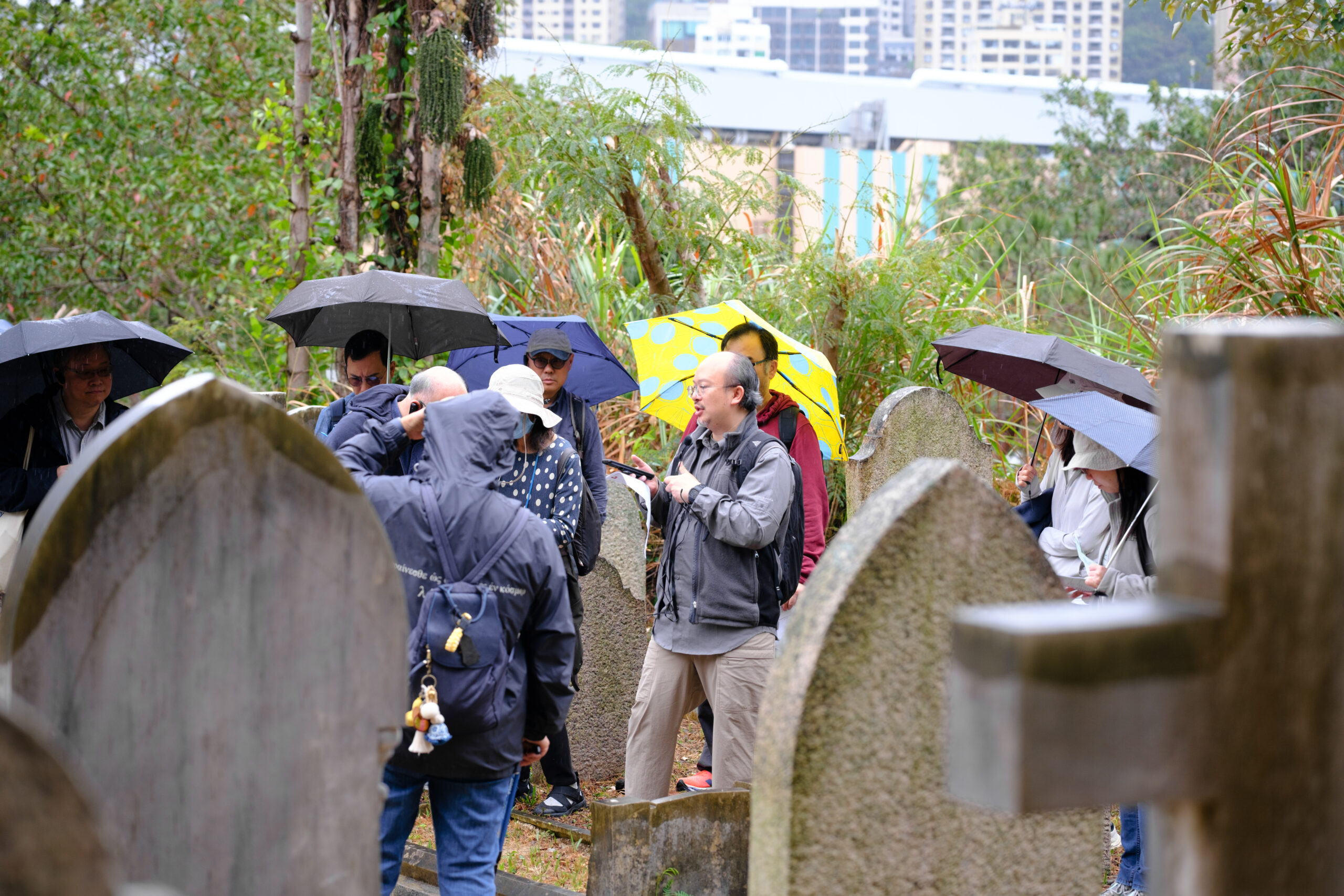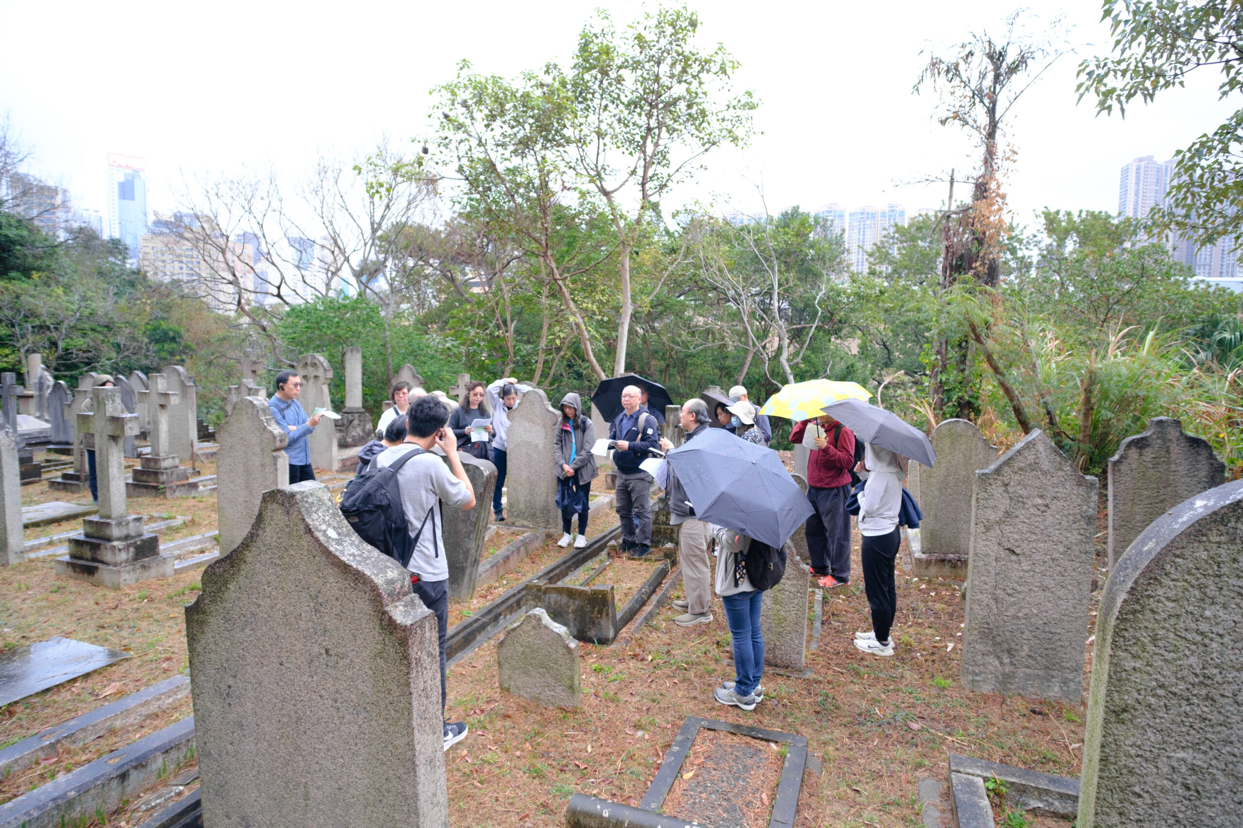當日早上十時多,我們到達香港墳場,導賞活動在綿綿細雨中開始,參加者分為兩組,從兩條不同的路線出發,在終點會合,我們走訪了高露雲夫人、William Young 醫生、約翰植棃牧師、威禮士牧師、關元昌、溫清溪等先賢墓碑(不能盡錄),透過籌委們的導賞介紹,以及碑刻銘文,認識本會先賢的歷史事跡,受益匪淺。